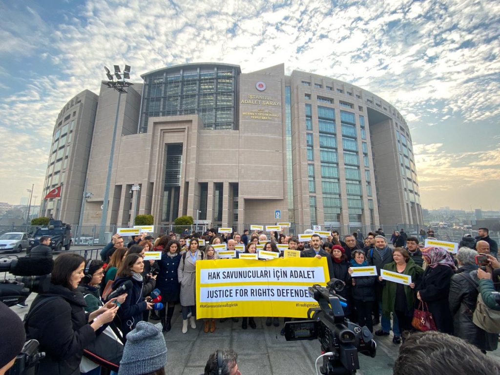 3 Temmuz 2020 tarihinde görülen 13. ve son duruşmada Taner Kılıç, Günal Kurşun, Özlem Dalkıran ve İdil Eser hakkında savcının mütalaası yönünde oy çokluğuyla mahkûmiyet kararı, diğer savunucular bakımından da beraat kararı verildi. Üç hâkimden oluşan mahkeme heyetinin bir üyesi, yargılanan insan hakları savunucularının tümü için beraat kararı verilmesi gerektiği görüşüyle karşı oy verdi. Bölge Adliye Mahkemesi’ne (istinaf) taşınan bu şerhli karara karşı Savcılık makamı, Nejat Taştan ve Veli Acu’nun beraat kararına itirazda bulundu.